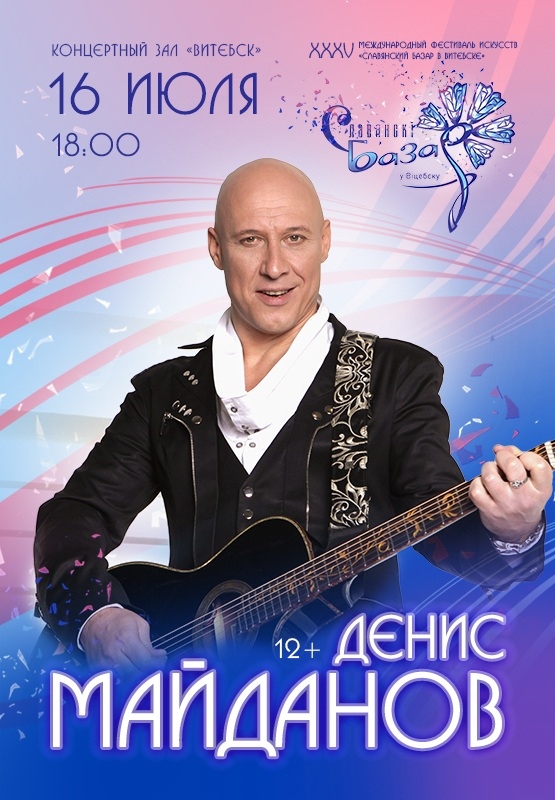 Сольный концерт народного артиста России, поэта и композитора Дениса МАЙДАНОВА станет ещё одним ярким юбилеем этого фестиваля – на сцене концертного зала «ВИТЕБСК» артист отметит своё 50-летие!