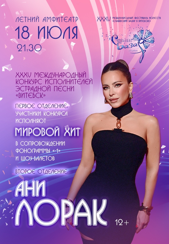 Второе отделение концерта – это подарок для всех поклонников большой сцены. Ярчайшая звезда, обладательница уникального голоса, известная своей мощной энергетикой – Ани ЛОРАК. Её выступление на XXXV Международном фестивале искусств «СЛАВЯНСКИЙ БАЗАР В ВИТЕБСКЕ» – одновременно и школа мастерства для молодых конкурсантов, и прекрасные эмоции для зрителей.