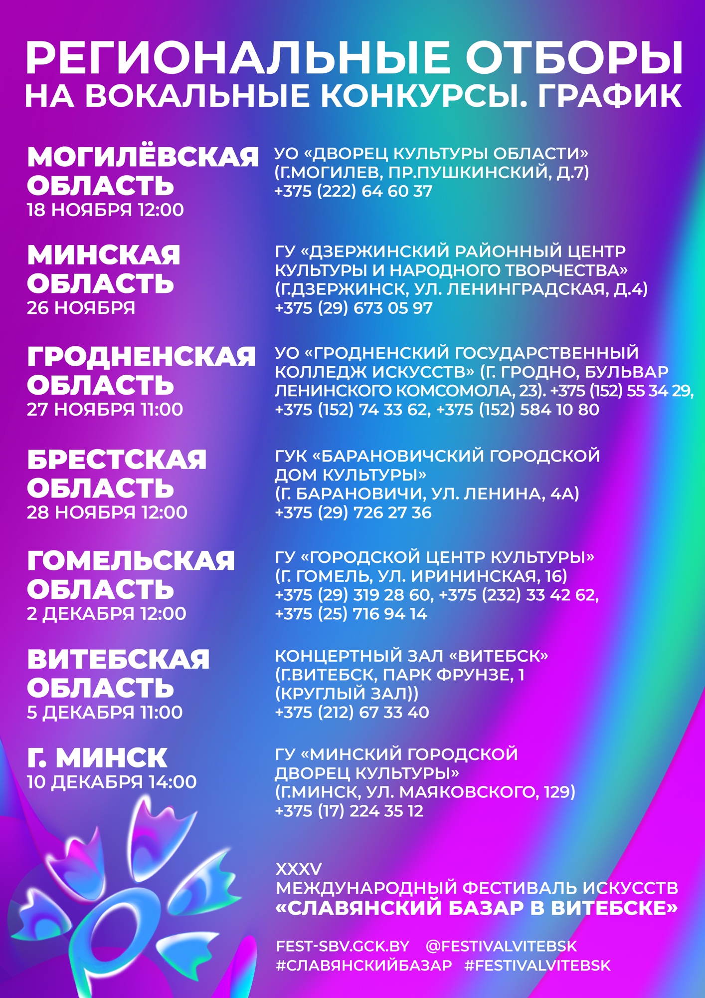 СТАРТ РЕГИОНАЛЬНЫХ ОТБОРОВ К КОНКУРСАМ «СЛАВЯНСКОГО БАЗАРА В ВИТЕБСКЕ» УЖЕ 18 НОЯБРЯ!